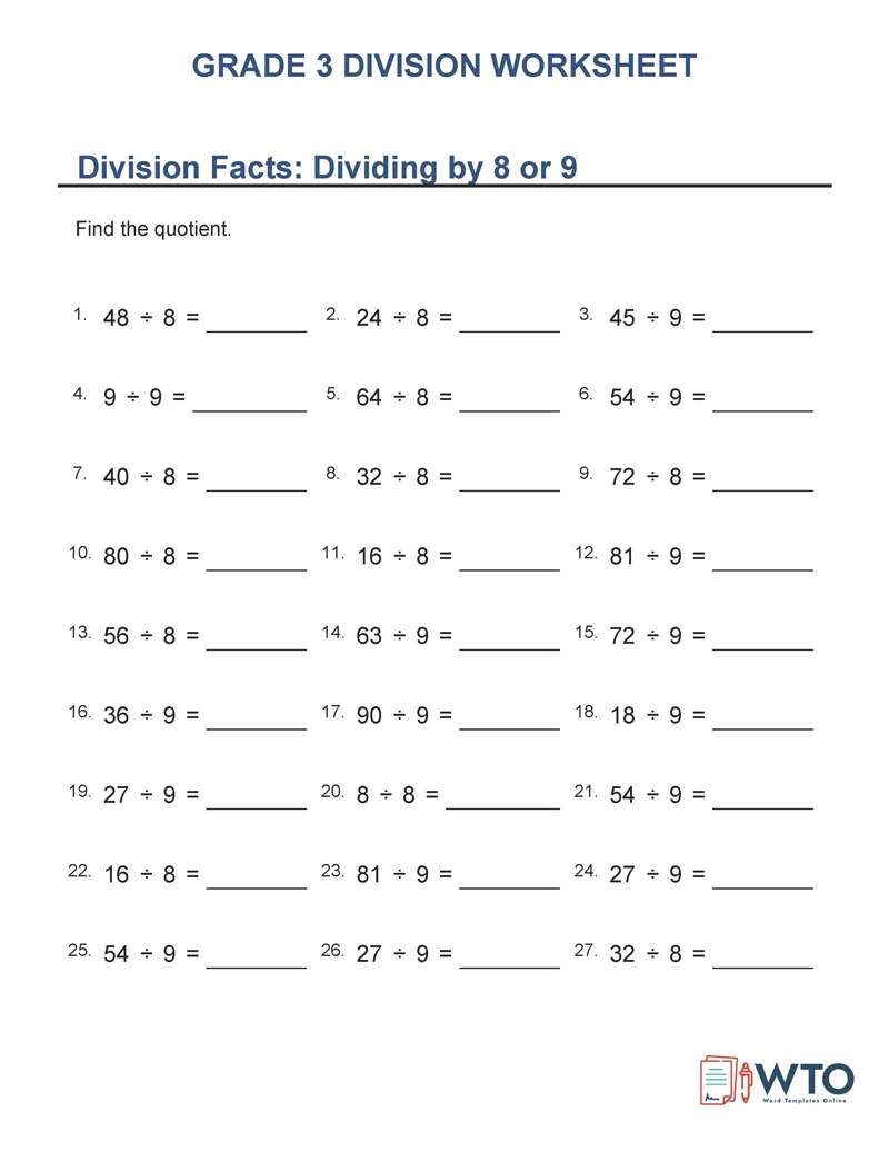 Year 3 Division Worksheets Pdf - Free Year 3 division worksheets will generate problem sets in all three types of division. These include horizontal, long, and fraction formats. The problem sets may contain divisors of two through nine, quotients of one to two digits, and remainders of numbers. You can find year three division worksheets with a variety of problems in each format.